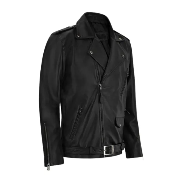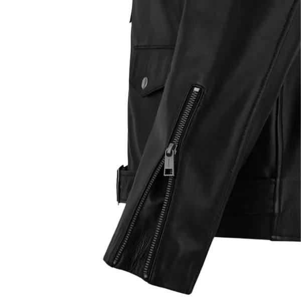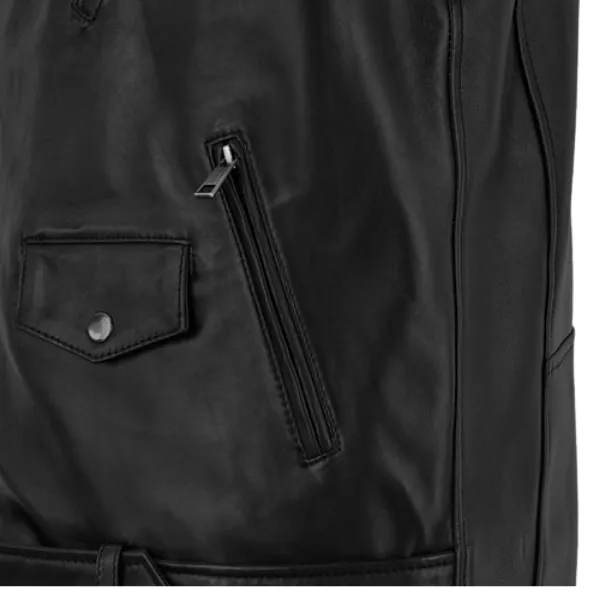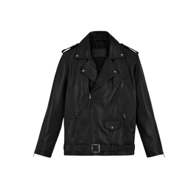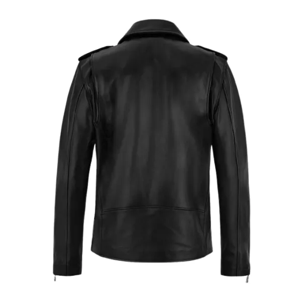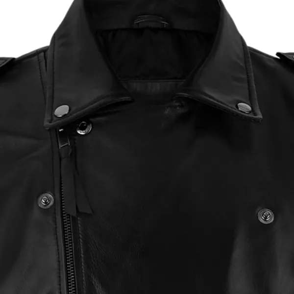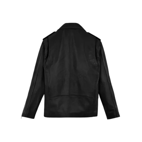 Made from real leather (just like in the movie), it is strong, smooth, and built to last. Inside, there’s a soft lining that keeps you warm and comfy, so you can wear it anytime, whether you’re riding a bike or just hanging out with friends. The shiny black color, classic biker collar, and silver zip details make this jacket a total head turner.