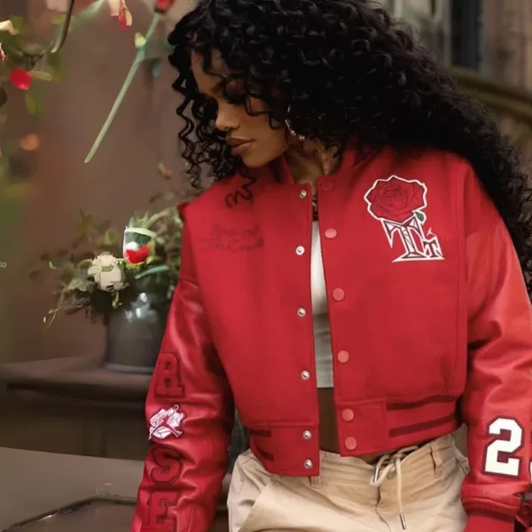The Teyana Taylor Red Varsity Jacket for Women blends bold color with effortless confidence, channeling her signature style into a fresh, wearable piece. With its deep red hue and clean varsity detailing, the jacket brings a strong presence while staying easy to pair with everyday outfits. It’s the kind of outerwear that turns simple looks into standout ones.